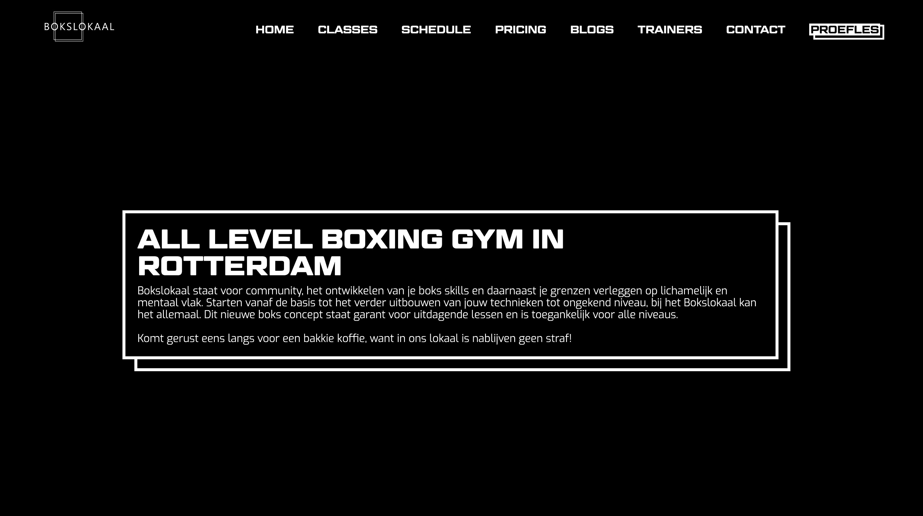 By trying to capture the essence of Bokslokaal the goal was to create a website that shows a professional boxing school without the aggressive feeling of more traditional boxing schools. By using a modern and clean style the website aims to show a professional boxing that is suited for everyone.