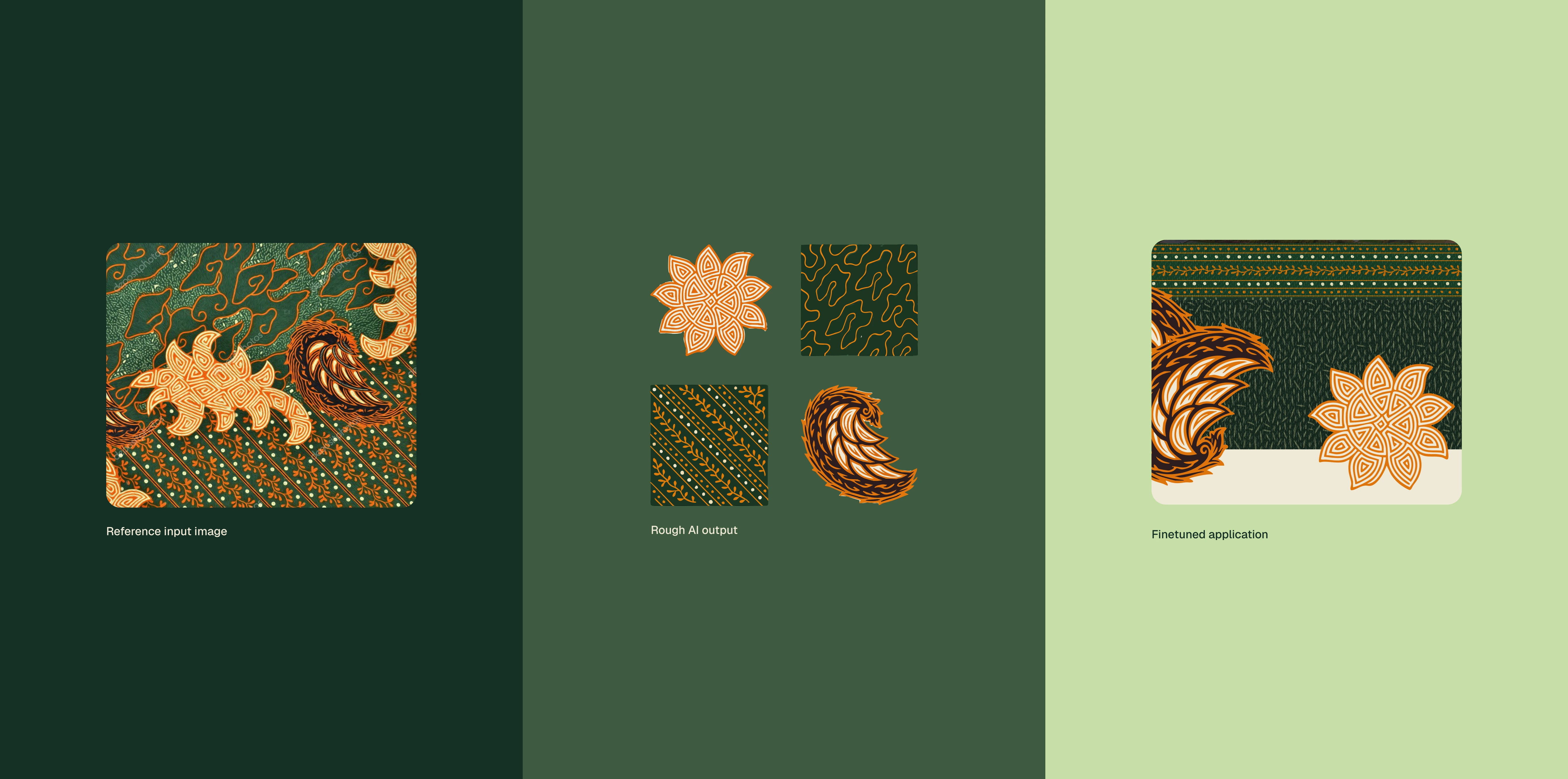 AI played a supporting role in the creative process. Custom Batik-inspired patterns and visual assets were generated using AI, strengthening the identity and connecting the design language to local culture.