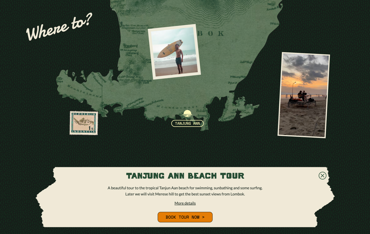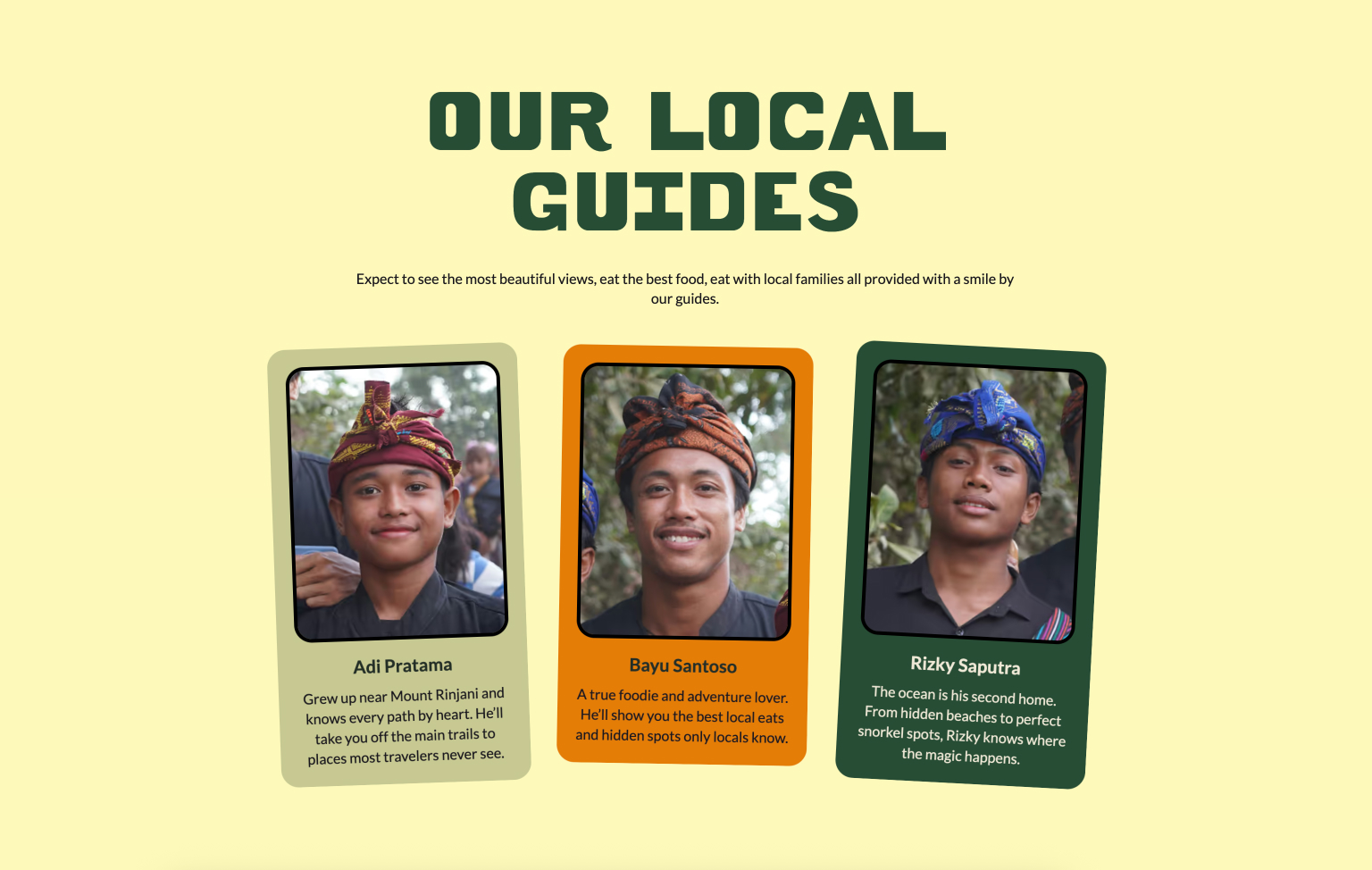 The focus of Lombok Local Tours is the look and feel. The website uses bold visuals, layered layouts, and motion to immerse users in the atmosphere of Lombok before they even book. Instead of feeling transactional, the platform aims to feel like the start of a journey.
