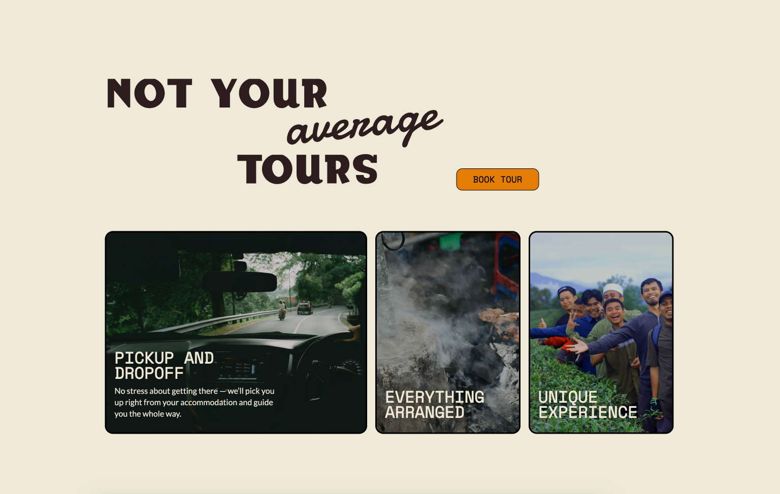 Tour booking platforms are often functional but uninspiring. Many present tours as lists of options rather than experiences to look forward to. The challenge was to design a website that doesn’t just inform users, but actively builds anticipation.
